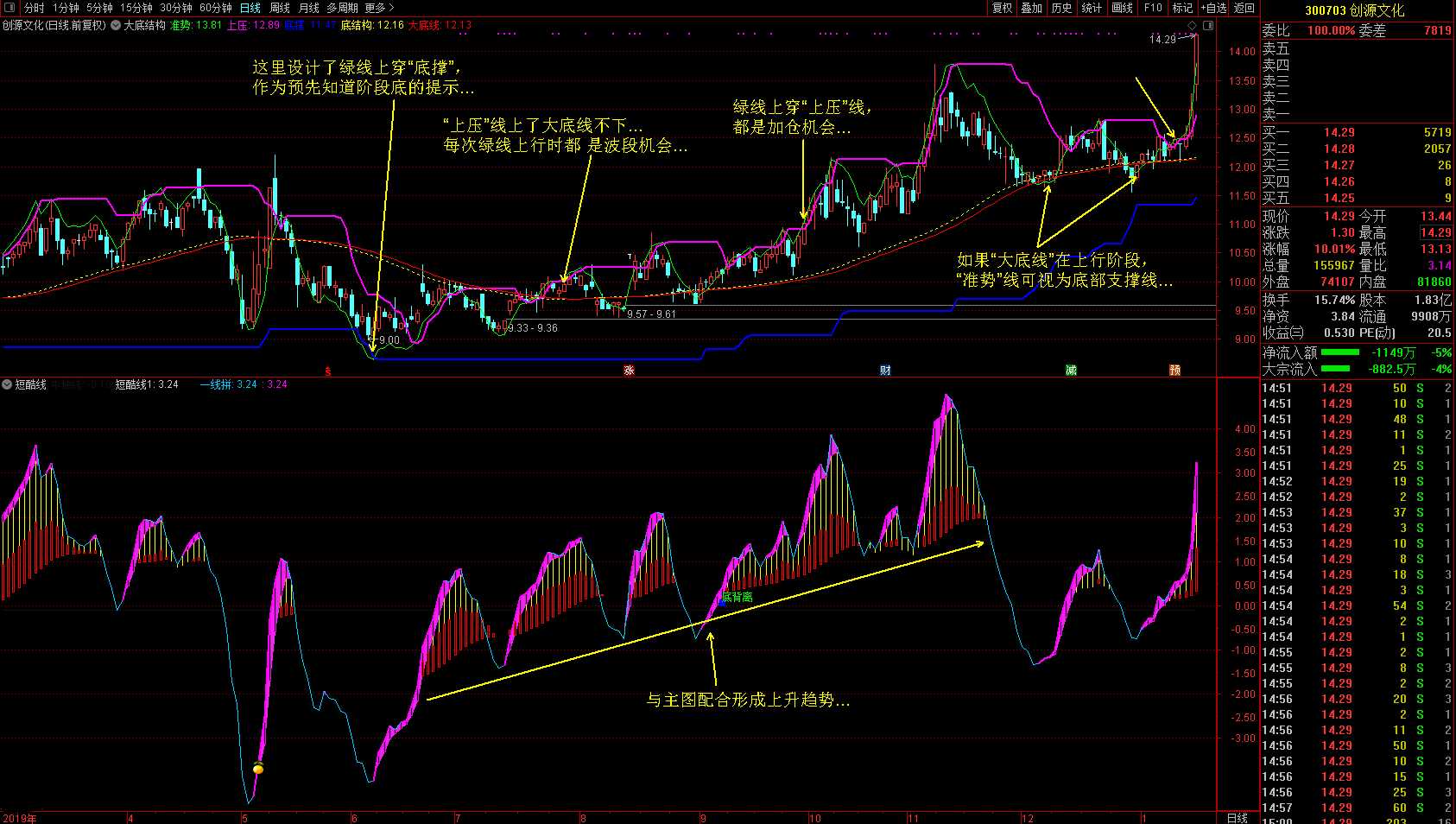 这是一套主图加副图的原创分析指标,通过比较成熟的思路和完美的趋势设计让炒股操作者(特别是刚入市的新手)对炒股技术有新的认识,通过指标图的提示可以极大的避免走弯路和亏损现象出现,更能在指标图当中明确分析个股趋势和底部。
