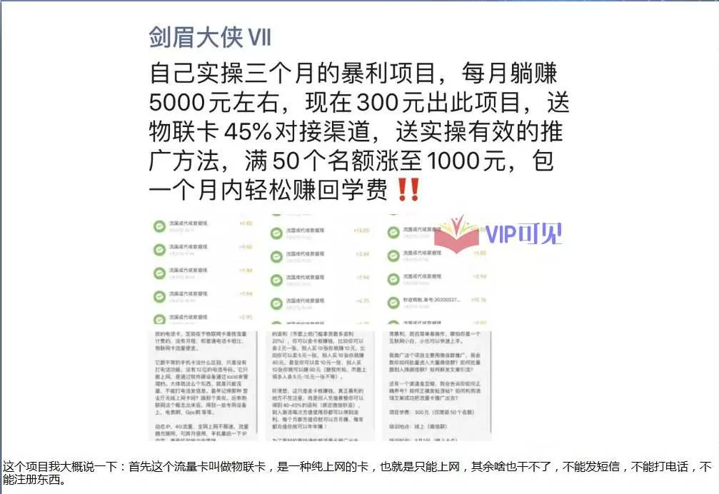 这个项目我大概说一下:首先这个流量卡叫做物联卡,是一种纯上网的卡,也就是只能上网,其余啥也干不了,不能发短信,不能打电话,不能注册东西。