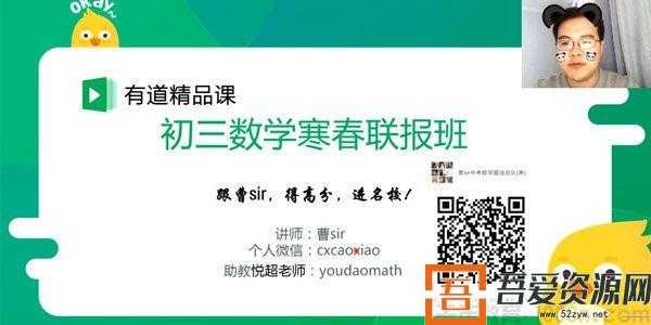2019有道精品课初三曹笑中考数学寒春联报班,百度网盘高清视频。