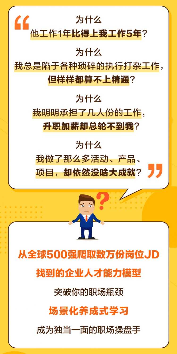 如果你是团队的管理者,可团购给同事,帮助他们高效协作,提升业绩;如果你处于职场上升期,拼命工作却沒有方向,领导也从未培养过自己,可以通过此课程找到方向,提升自我