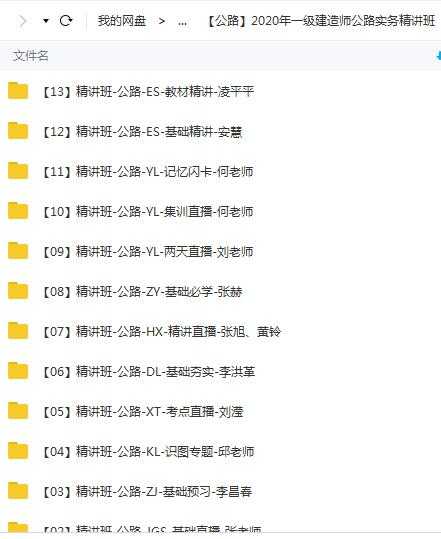 2020年一级建造师公路工程管理与实务(公路实务)全套精讲班视频课程目录:
