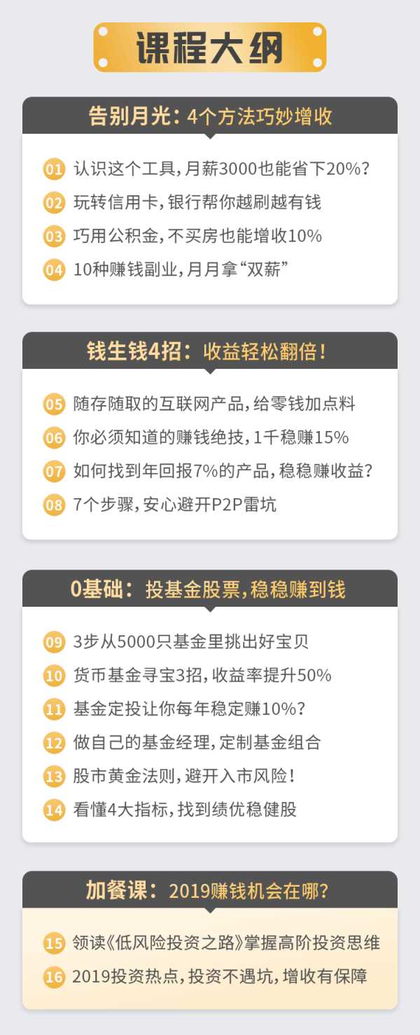 这可能是最适合工薪族理财、白领投资入门,提升财商的课程了。零基础不是你的阻碍,相反,零基础恰好是你的机会。理财落实在生活的方方面面,年轻人真的是越早学习越好。