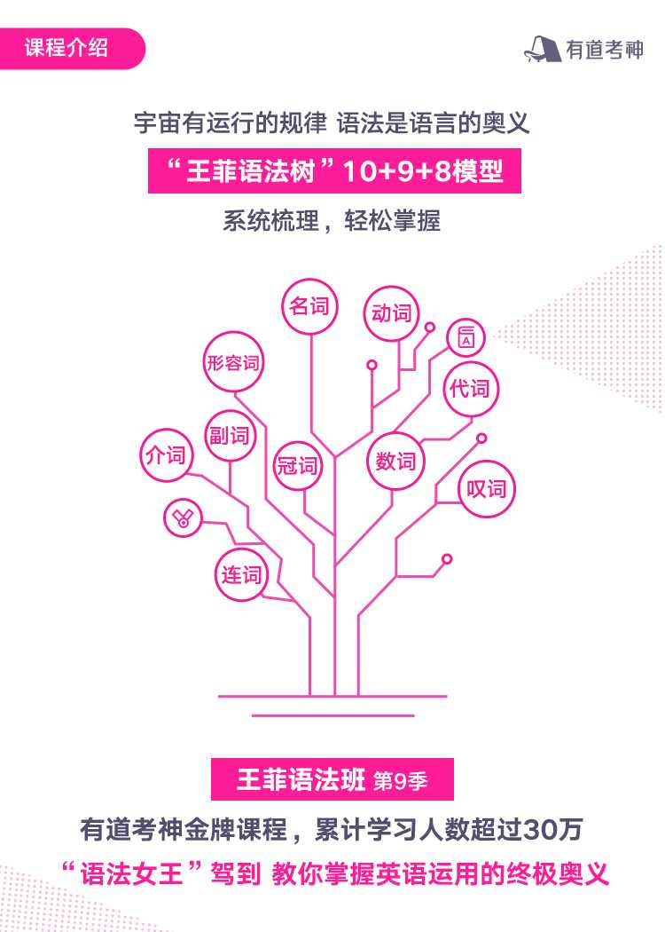王菲语法班 第九季,有道考神**课程,累计学习人数超过30万,“语法女王”驾到,教你掌握英语运用的终极奥义;