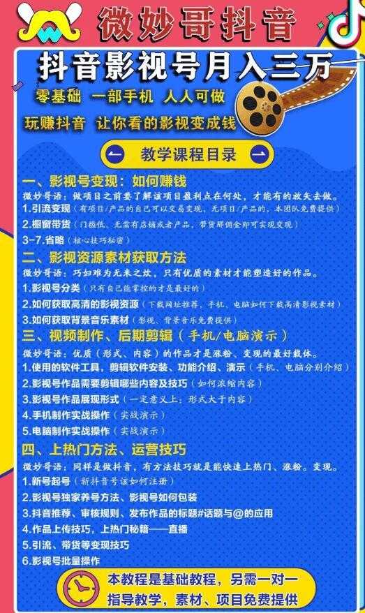 零基础,一部手机,人人可做的抖音影视号,微妙哥抖音影视号月入3万——更多资源,课程更新在
