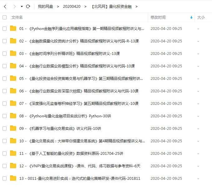 北风网金融量化交易投资精品视频教程课程目录: