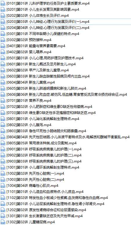 2019主管护师证考试之儿科护理学培训讲座视频教程全集(含练习题和资料)——更多资源,课程更新在