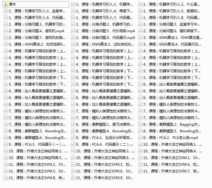 本《机器学习原理与应用入门》教学视频课程全套内容目录如下: