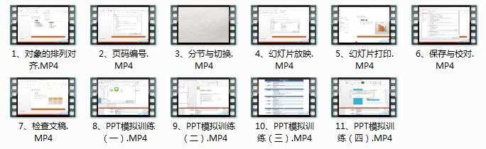 教程描述:《微软办公软件国际认证之PPT培训(下)》视频课程,全套共11集,课程的具体内容包括:PPT对象的排列对齐操作、页码编号、分节与切换、幻灯片放映、幻灯片打印、PPT模拟训练等操作知识详细视频讲解。