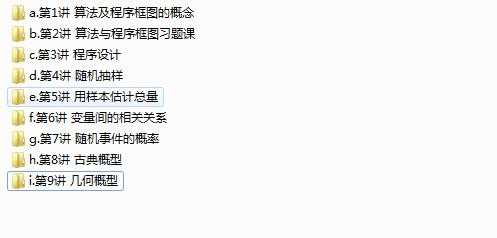 高中数学必修三课本知识点精讲全套网课视频,由周家伟老师主讲,共24集,课程主要对高中数学必修三教材的重要知识点进行一一梳理精讲,具体的讲课教学内容包括:算法及程序框图的概念及习题课讲解;程序设计;随机抽样;用样本估计总量;变量间的相关关系;随机事件的概率;古典概型;几何概型等等。。。