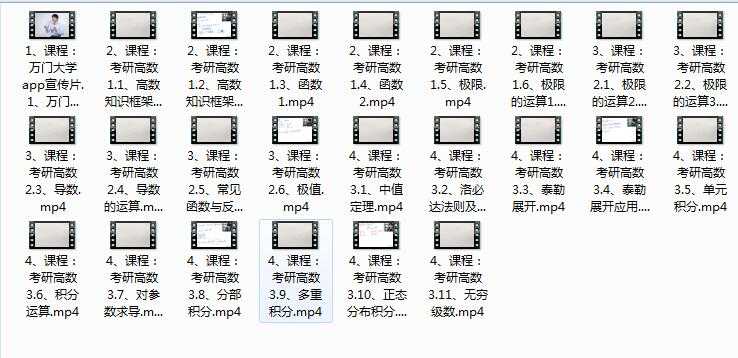 本高等数学考研重要考点知识串讲教学视频全套内容目录如下: