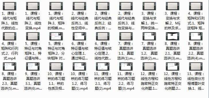 考研数学之线性代数重要考点全讲解视频教程,共27集,课程主要将考研数学中线性代数在考试中的重要考点知识进行详细讲解,如:线代与矩阵、线代与经典反例、矩阵和行列式、特征值与核心定理及数学考研真题选讲等等。。。