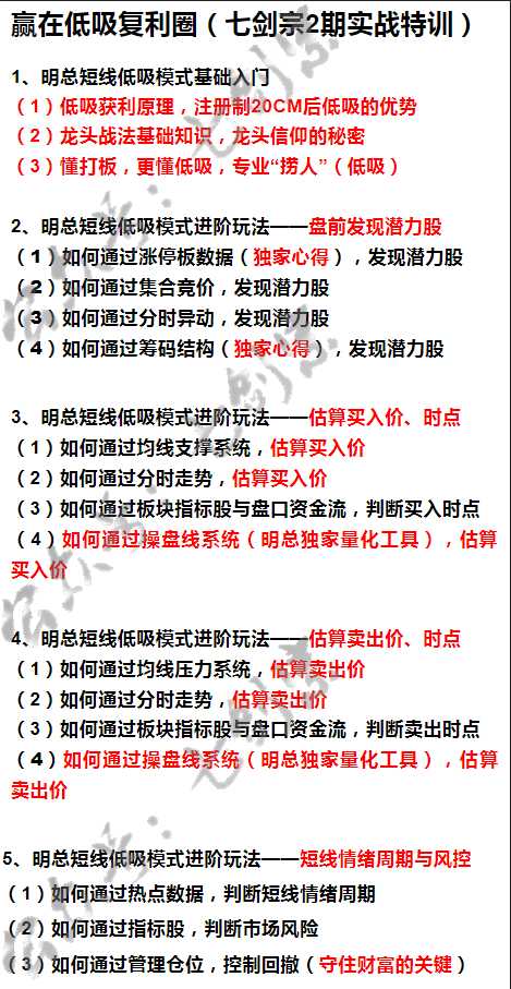 明总七剑宗实战特训营(2期)——赢在低吸复利圈资源简介:
