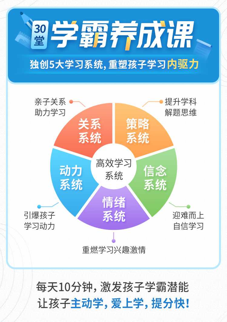 30堂学霸养成课。独创5大学习系统,重塑孩子学习内驱力