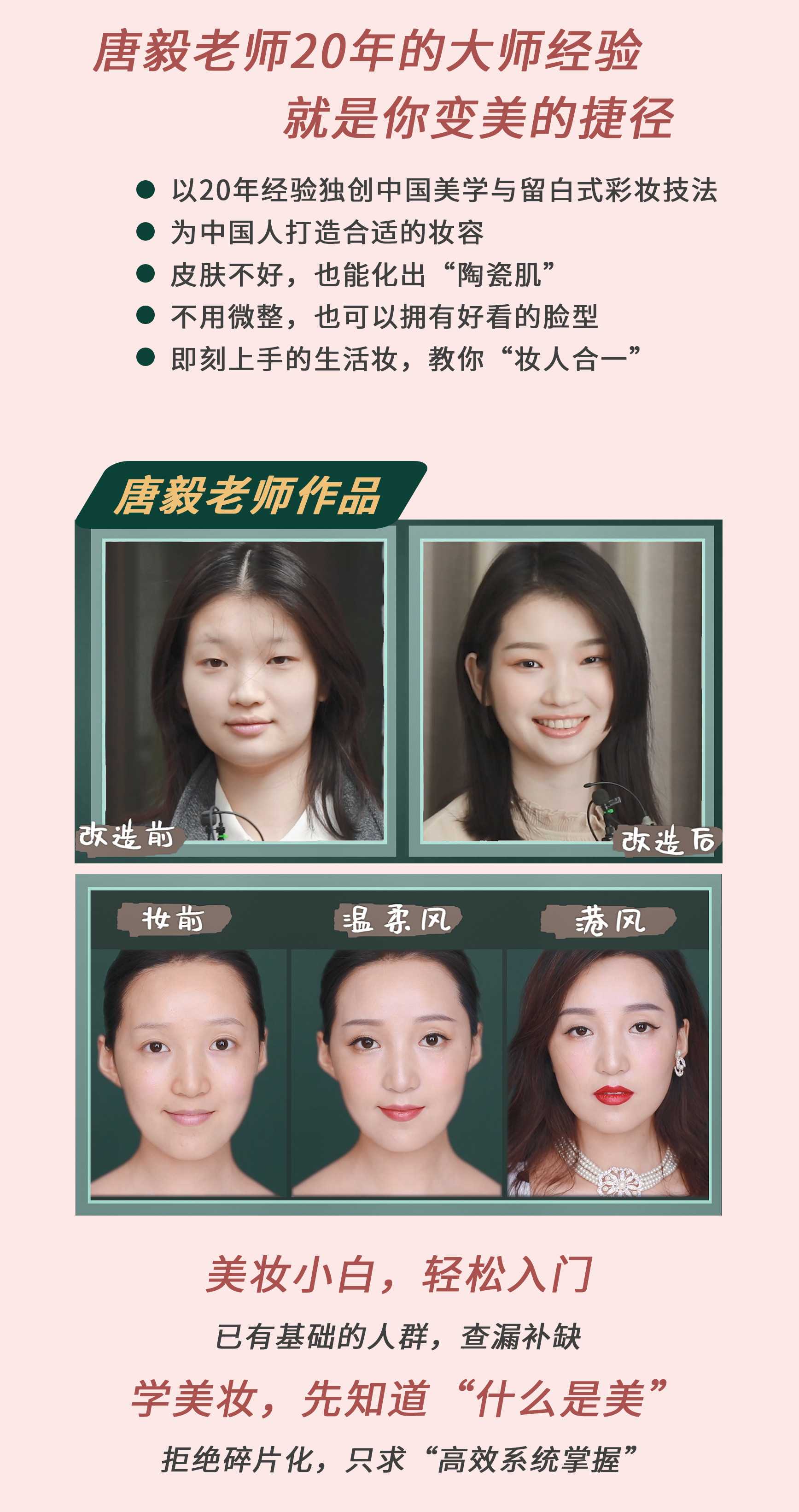 作为化遍了大半个娱乐圈的“行走的化妆教科书”,—线女明星背后的“美貌推手”以“一化中国妆就上热搜”“激活无数红毯形象”体质出圈的唐毅老师,为中国女孩面相与骨相贴心打造了独一无二的《彩妆大师课》。