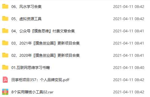 《摸鱼创业圈》2021年最新合集:圈内最新项目和玩法套路,轻松月入N万资源简介: