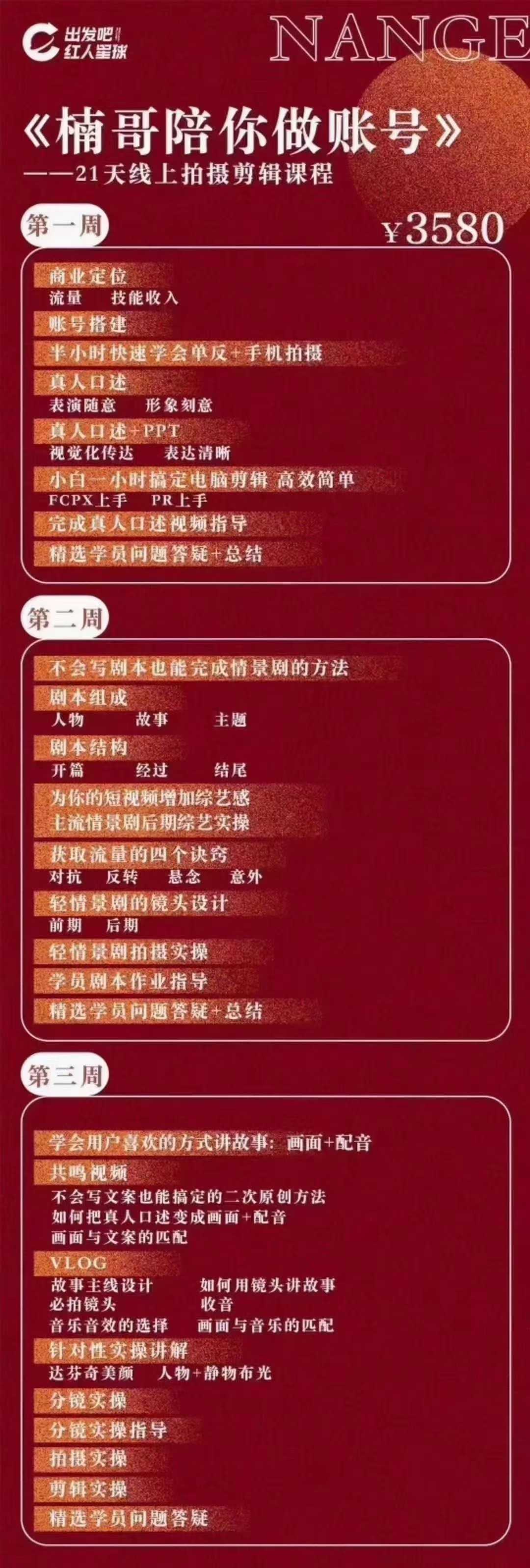《楠哥陪你做账号》———21天线上拍摄剪辑课程资源简介: