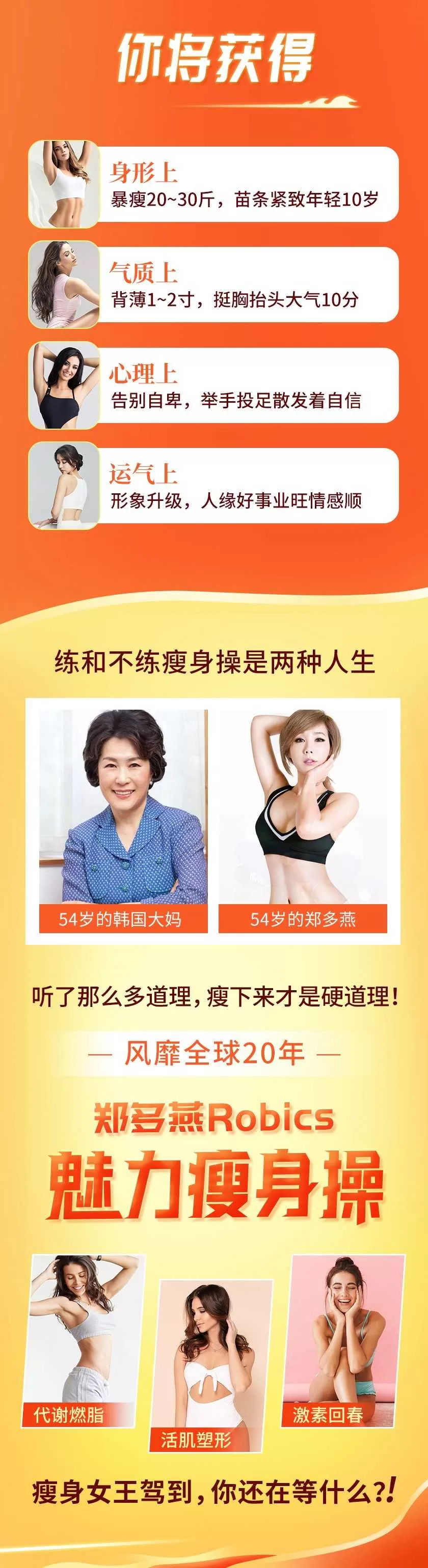 郑多燕全新研制的课程Robics瘦身操,完美结合有氧无氧运动,减脂塑形一步到位!