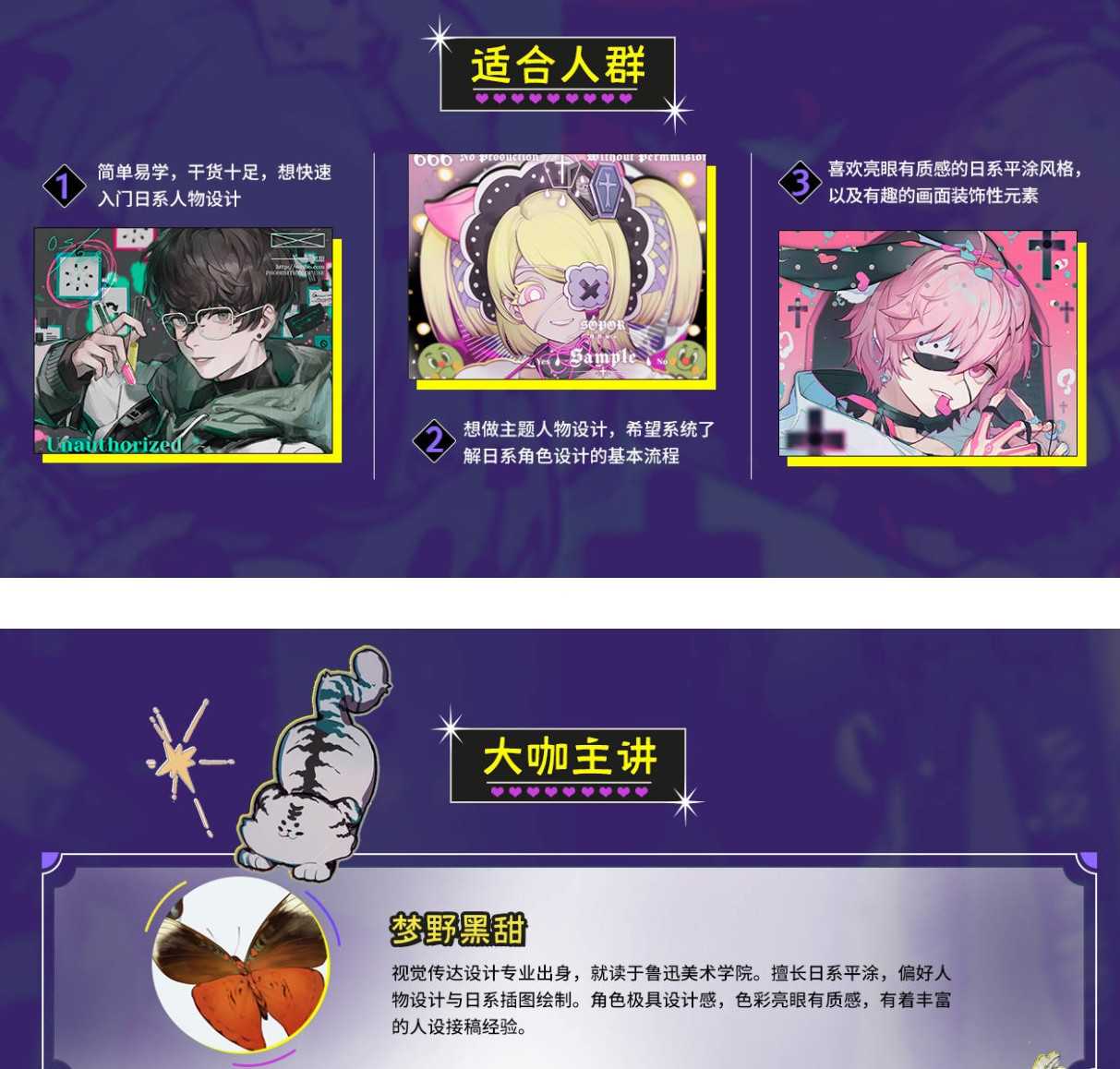 【大触来了】梦野黑甜日系插画人物设计班资源简介: