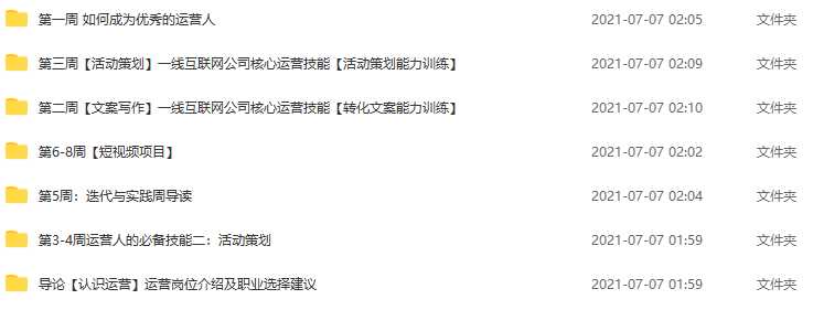 2、在“运营新人启航计划”中,我们除了萃取一线互联网公司最精华的能力模型,让你在最短的时间学到最核心的技能,还在课程中设计了实践环节,每周会模拟带你体验1-2个大厂的真实工作流程,让你快速了解大厂内部的工作方法,解决只会写,却不知道如何落地的问题,实实在在地掌握和应用技能。