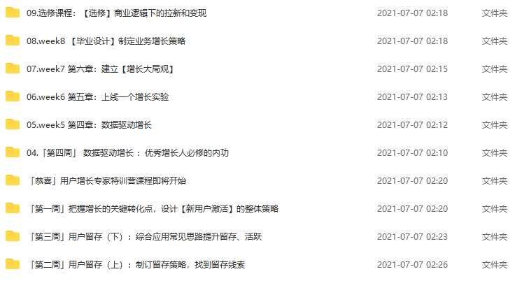 用户增长专家培养计划,突破增长瓶颈、构建增长方法(视频+课件)资源简介: