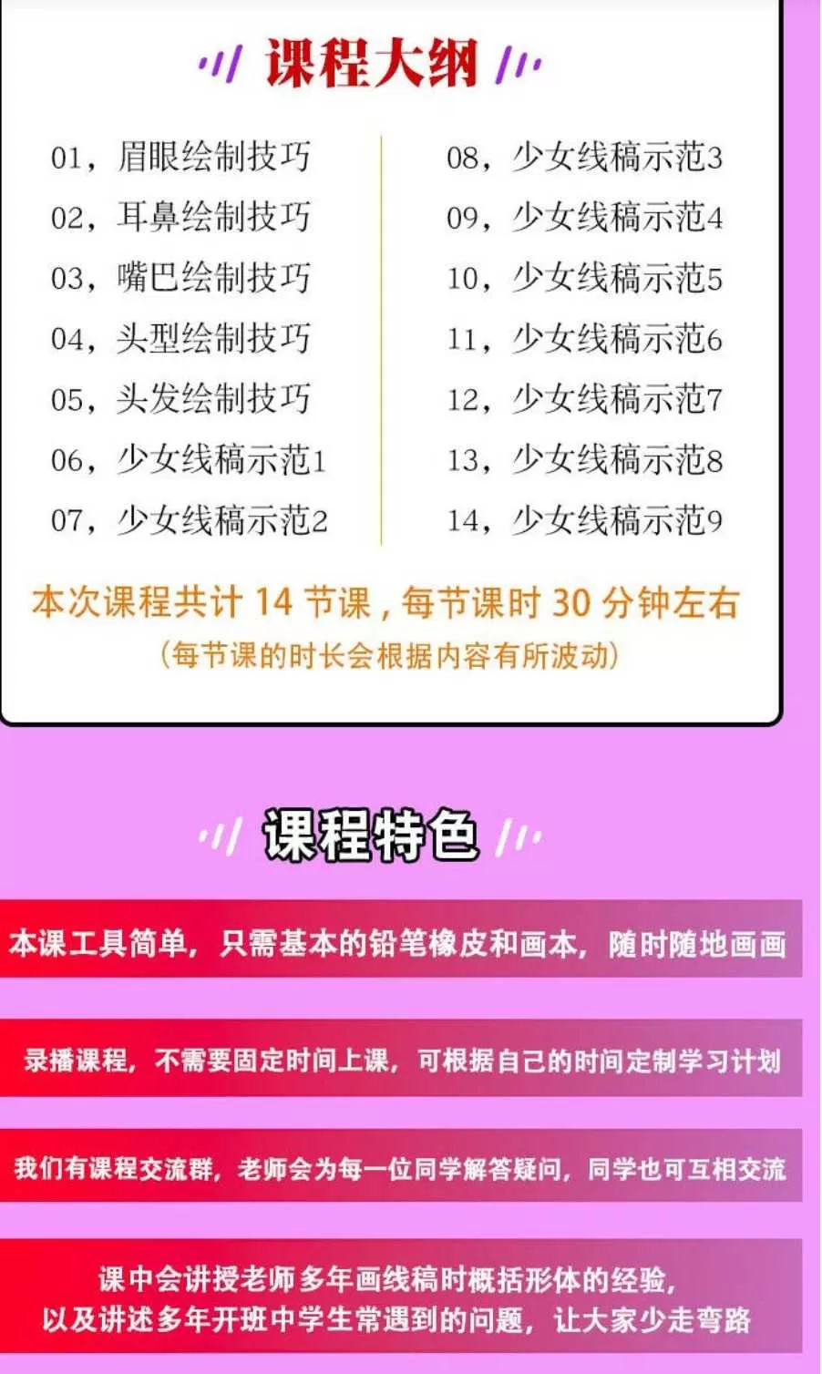 鱼小沫2020少女头像线稿精品课肖像零基础入门【画质高清】资源简介: