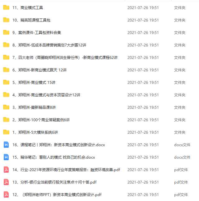 郑翔洲-新商业模式全集价值12980资源简介: