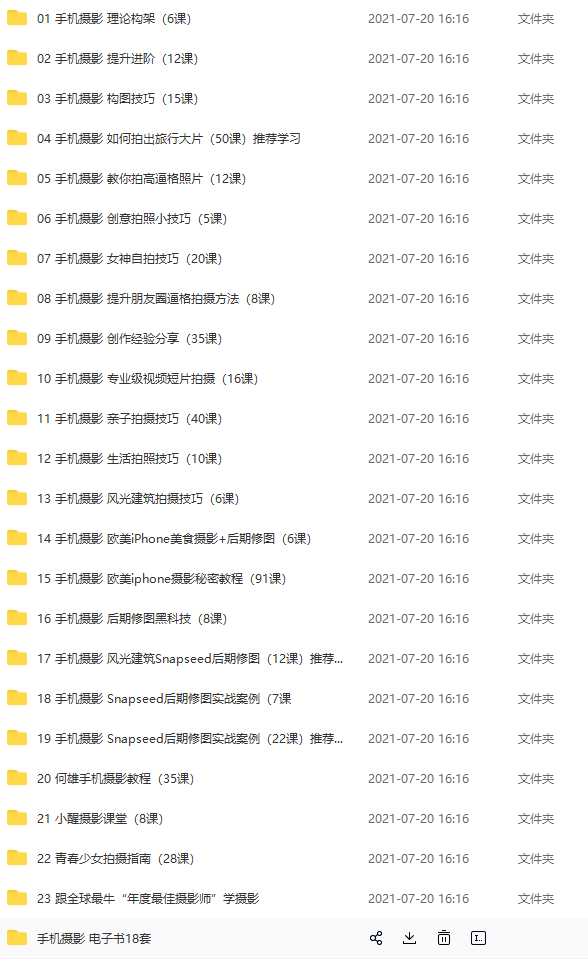 24套手机摄影系列课程合集资源简介: