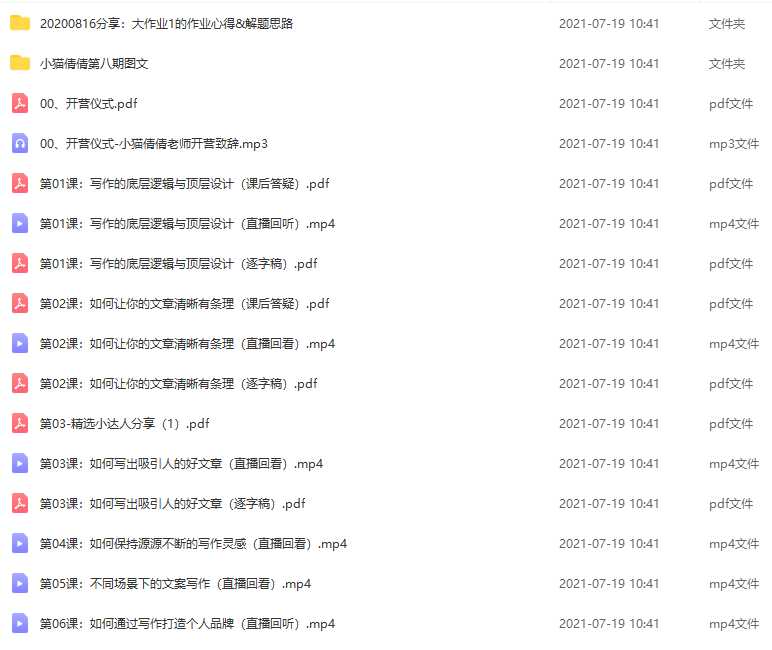 小猫倩倩第八期写作训练营资源简介: