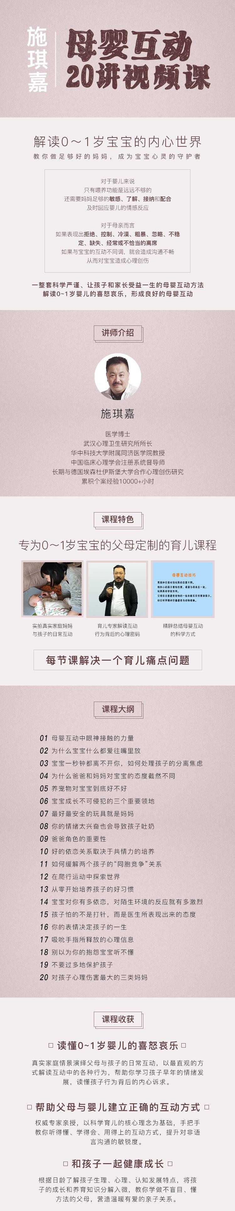施琪嘉母婴互动20讲视频课资源简介: