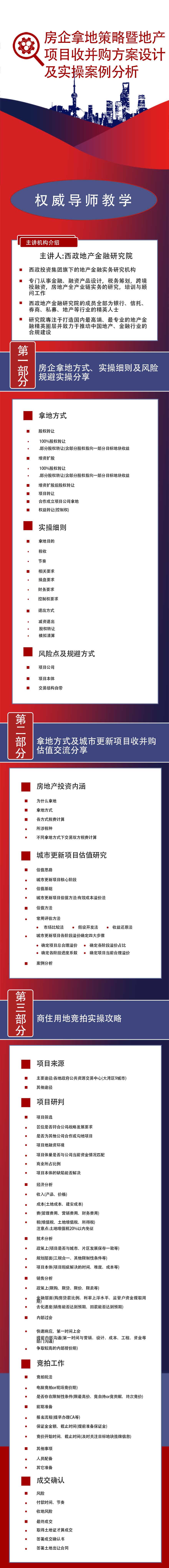房企拿地策略暨地产项目收并购方案设计及实操案例分析资源简介: