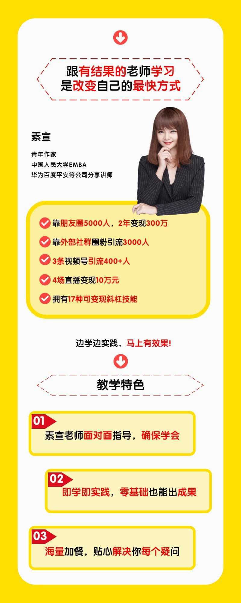 素宣成长学院低成本获客变现营,如何低成本获取线上流量价值2699元资源简介: