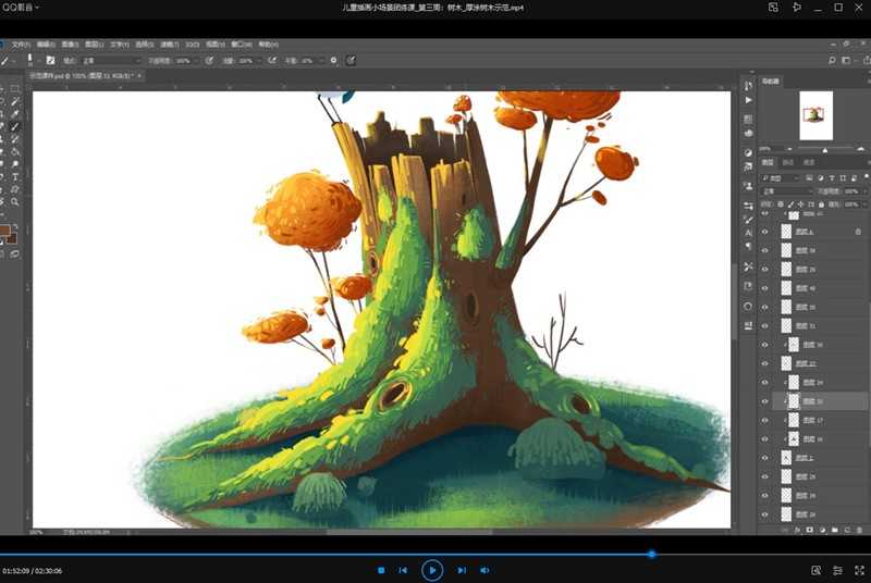 儿童插画小场景团练课_第三周:树木_厚涂树木示范.mp4