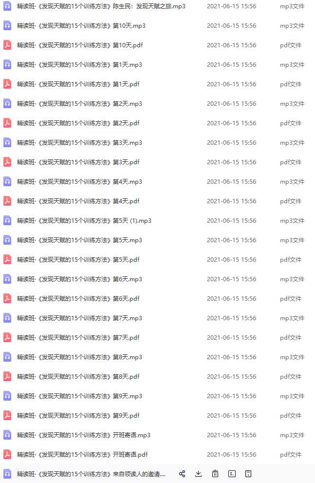陈生民《发现天赋的15个训练方法》精读班资源简介: