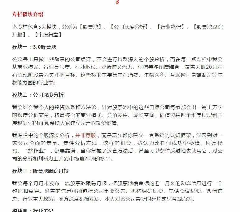 生叔3.0来啦,1.0和2.0的深度和专业性都受到了广泛的好评。生叔存在的地方结合我个人的投资体系和方法论,针对股票池中的这些目标公司每家都会出一篇上万字的深度分析文章,将最核心的商业模式、竞争逻辑、成长空间、估值逻辑四个维度层层剥开展现到你的面前,帮助大家建立完善的投资逻辑。我专栏中的个股深度分析,并非荐股,而是意在帮你建立一套系统的认知框架,学习到对一家公司全面的定量、定性分析方法,这样的机会,我认为比任何成功学秘籍、财富代码、“作抄业”,都要靠谱,当你掌握了这套方法后,甚至可以条件反射地去使用它,对公司的分析和判断力上升到市场前20%的水平。