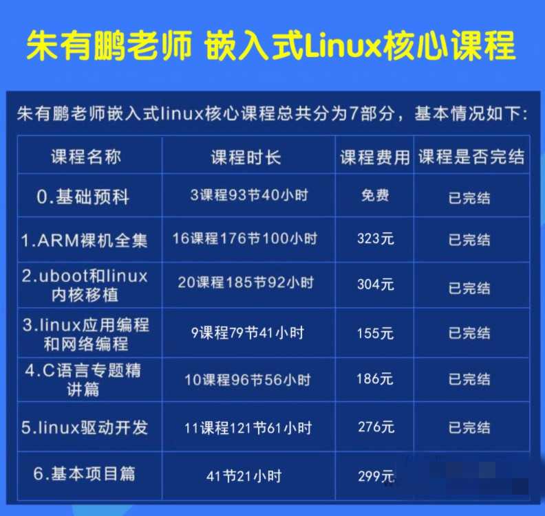 朱有鹏嵌入式linux核心全套课程,开发课程从入门到大神资源简介: