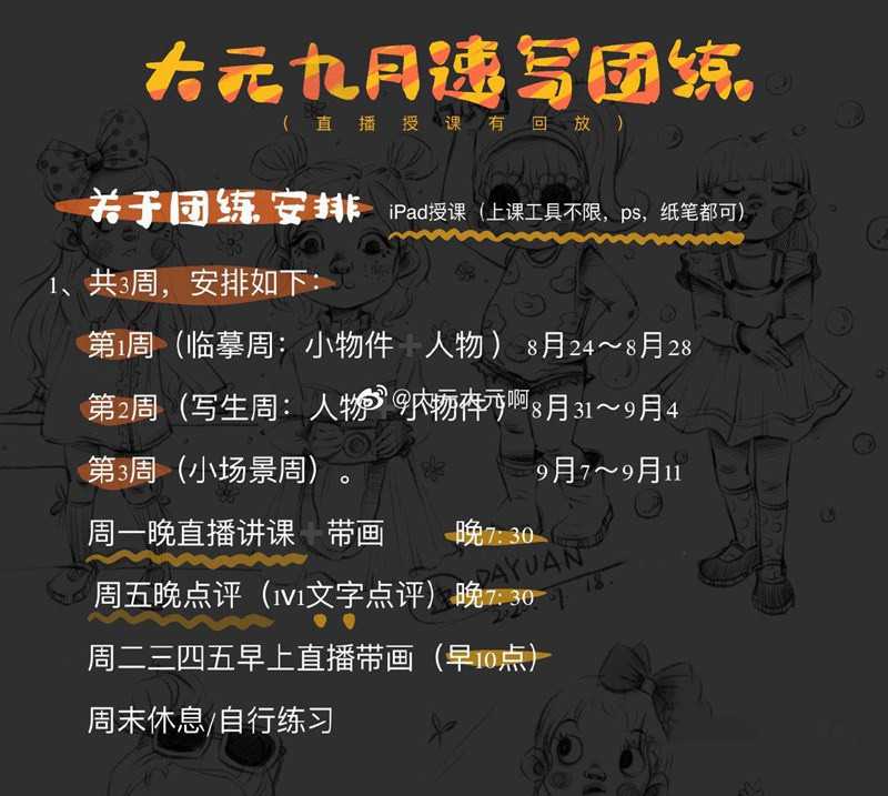 大元ipad速写团练2020年9月结课,画质高清有笔刷素材
