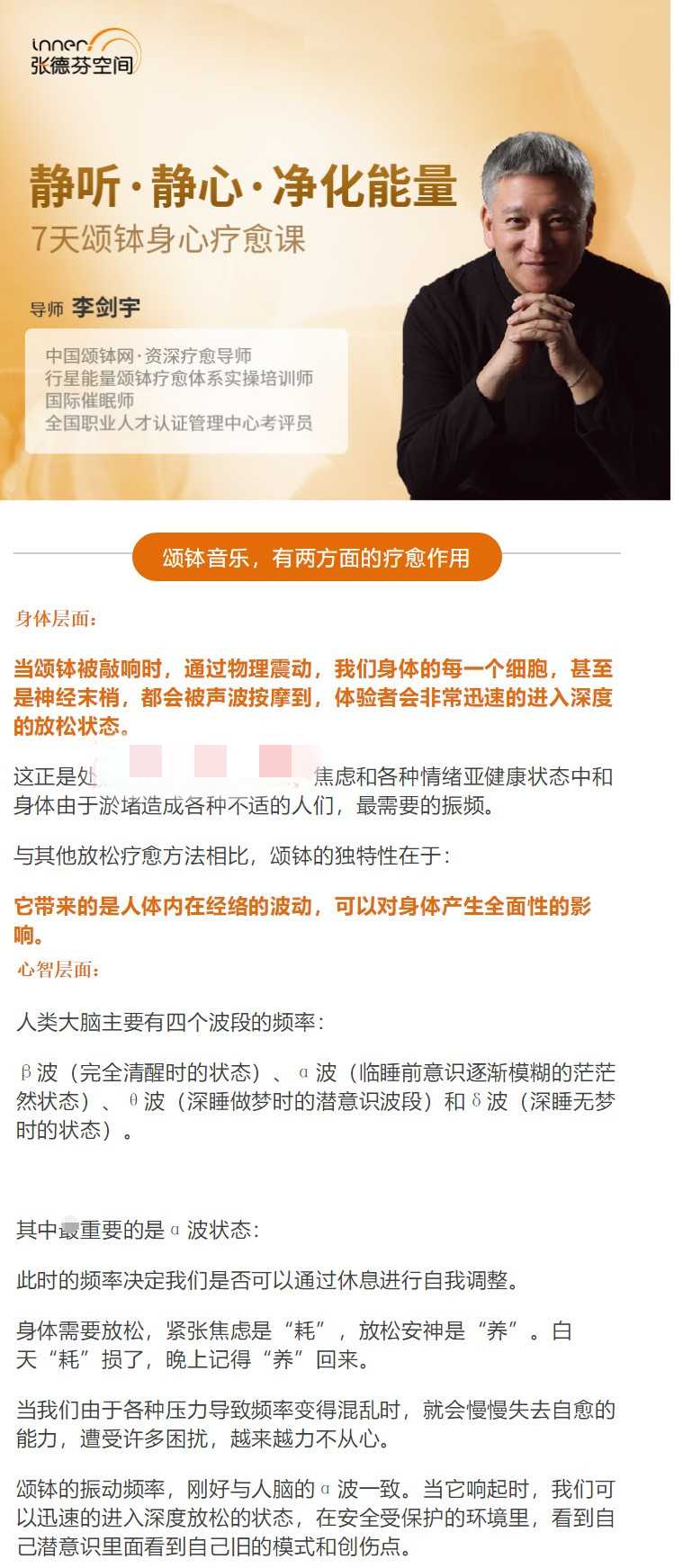 李剑宇 7天颂钵身心疗愈课颂钵音乐净化能量 微课视频+音频课程资源简介: