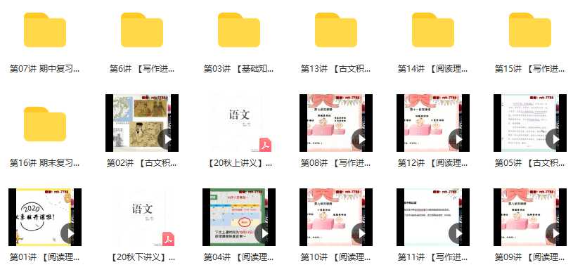 【2020-秋】初二语文阅读写作直播班 -任佳资源简介: