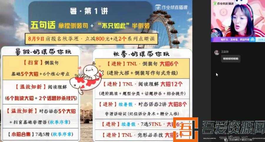 作业帮-张彩琪 高二英语 2021暑期尖端班 百度网盘 VIP会员免费下载。
