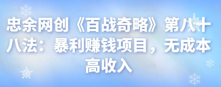 忠余网创《百战奇略》第八十八法:暴利赚钱项目,无成本高收入【视频课程】