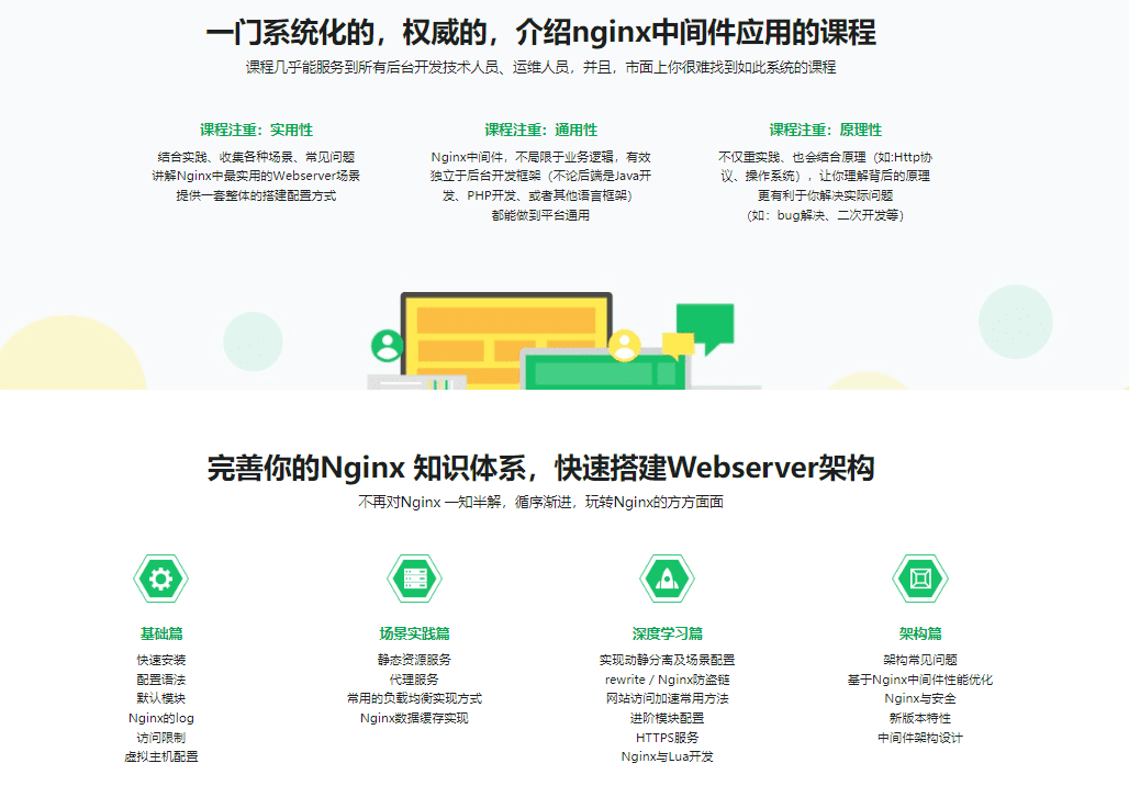 系统性介绍Nginx ,全面覆盖主流语言Python、GO、LNMP、Java的应用web服务场景,课程通用性非常高,几乎所有与后台相关的技术人员都会用到。系统掌握Nginx配置与快速搭建高可用架构的技术方法,你必将成为企业争抢的高薪人才!