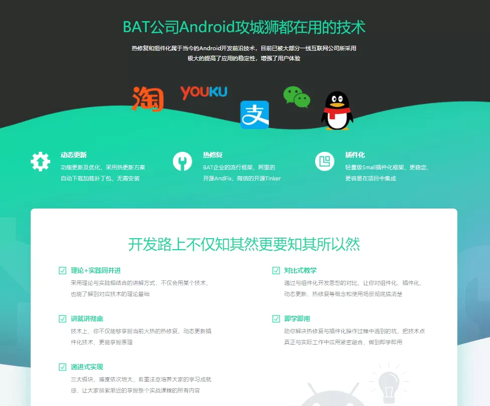 - 通过介绍市面上比较流行的热修复框架并进行对比,教会同学们在面对多种技术方案的时候,如何选出最适合自己的方案,以及我们为什么最终选择AndFix与Tinker.