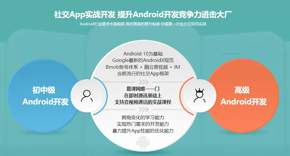课程基于后端云数据库设计用户系统,基于用户关系实现即时通讯和音视频通话功能,,实现一个完整的社交App开发,深入思考如何构建通讯层,以及音视频聊天框架,并带从内存,布局、加固混淆等方面来提升App性能及安全。
