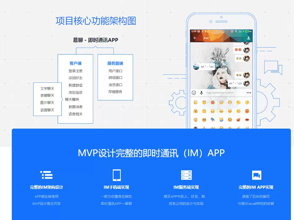 课程介绍(A000035): 带后台的IM即时通讯App 全程MVP手把手打造 本课程将全程…