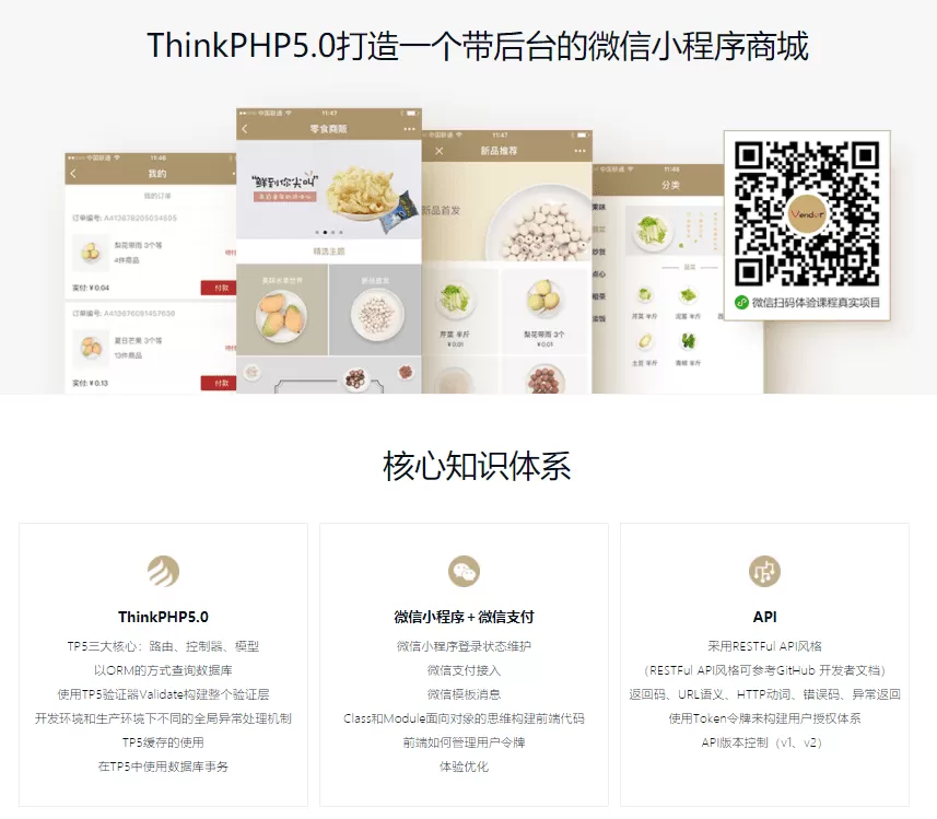 通过开发一个已上线的小程序商城全栈应用,学会如何打造iOS,Android,Web多端适配的服务端标准API,掌握三端分离开发方式,理解现代Web的基本架构思想