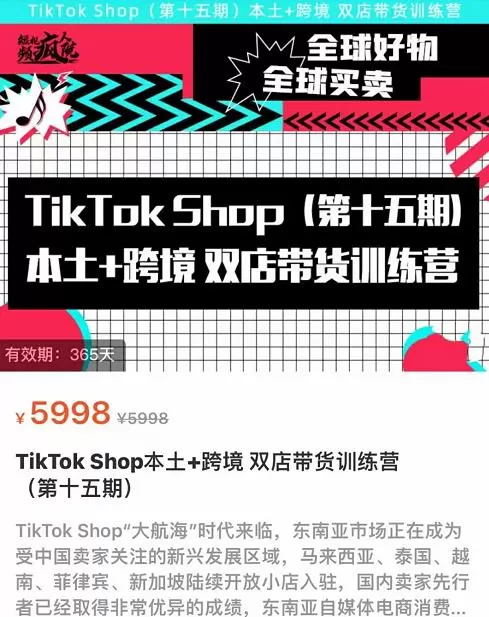 TikTok Shop本土+跨境双店带货训练营(第十五期)包含入门基础课,全球好物,全球买卖,一店卖全球