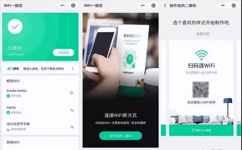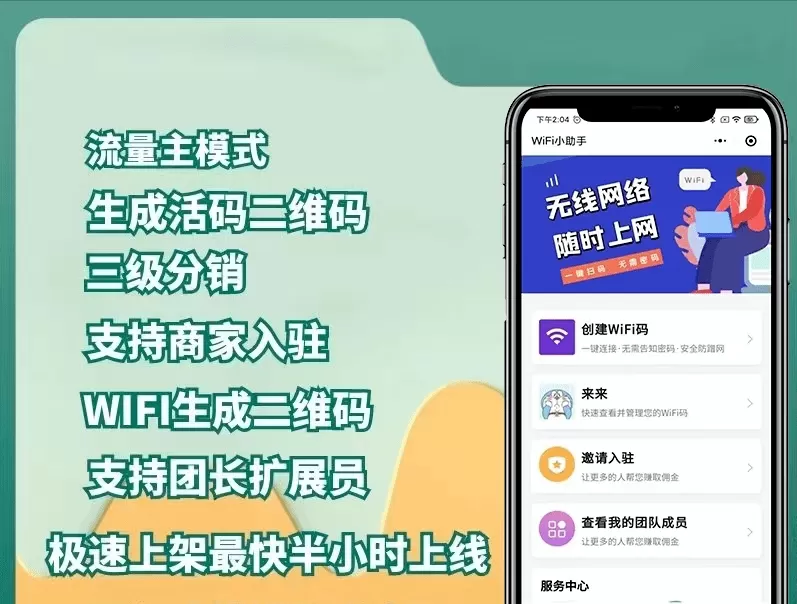 我们把线下实体商家的WiFi升级变成小程序,再把小程序变成二维码,只要有顾客进店消费,并且需要使用WiFi,顾客通过扫描二维码连接WiFi,我们就能获取收益