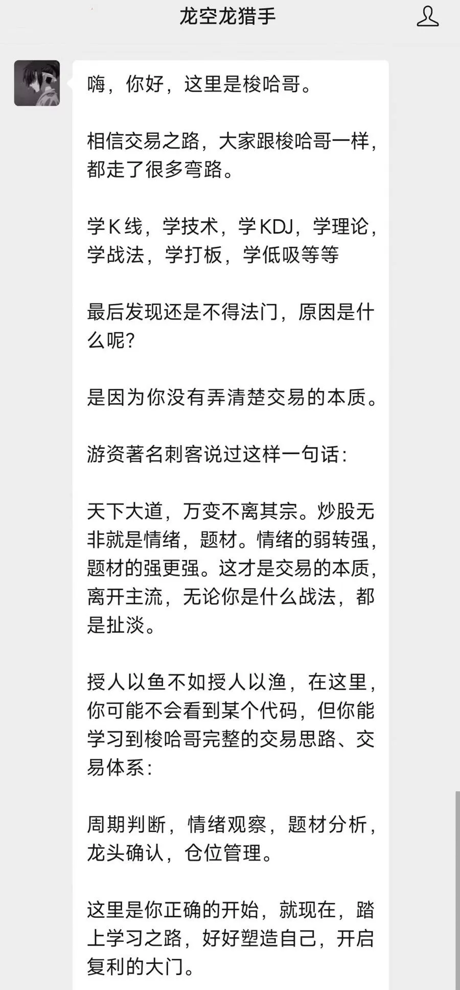 授人以鱼不如授人以渔,在这里,你可能不会看到某个代码,但你能学习到梭哈哥完整的交易思路、交易体系: