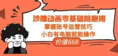 课程来自时光的沙雕动画零基础陪跑班,价值668元。帮助你掌握账号运营技巧,课程非常细致,通俗易懂。合适:零基础小白的创作者、想突破现状的年轻人、想抓住短视频创业机会的人、有电脑,懂电脑基础操作的人群。