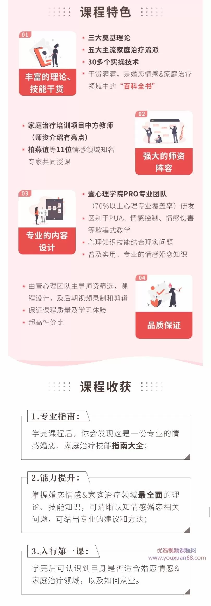 1.专业指南:学完课程后,你会发现这是一份专业的情感婚恋、家庭治疗技能指南大全;